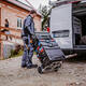 Thanks to the telescopic handle and large solid rubber wheels, you can move even heavy loads with ease and protect your back – whether on construction sites or uneven ground. When the job is done, simply fold the caddy flat and store it in seconds to save space.