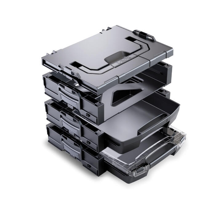 Need your materials close at hand, your small parts neatly stored, and your L-BOXX tool cases intelligently expanded? That’s where the i-BOXX Rack 3 pieces comes in. Thanks to the patented click mechanism, it can be combined almost endlessly and integrated into your existing L-BOXX system.