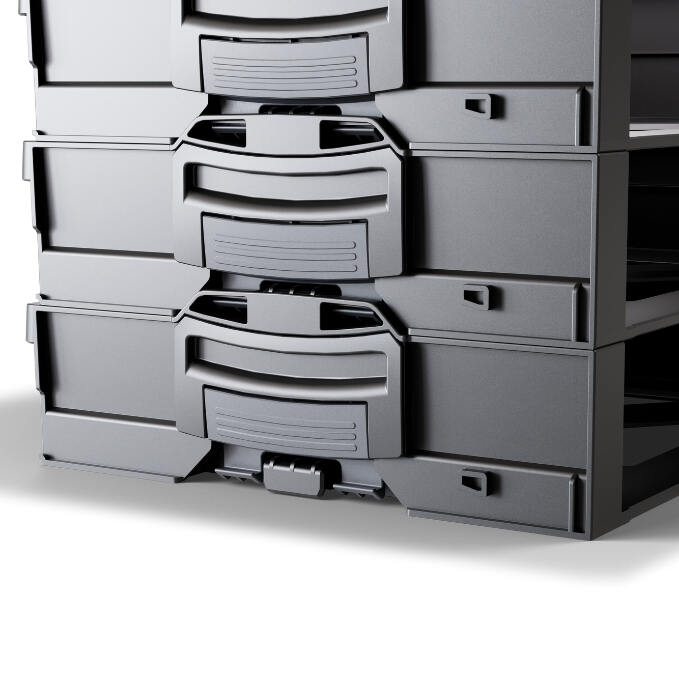 The drawer system for up to 3 i-BOXXes or LS-Trays is your base foundation for smart, structured storage. This system isn’t just about fitting everything in – it’s about making everything work together. Stackable, expandable, and just as flexible as your workday demands.