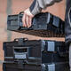 The L-BOXX 1 is more than just a small toolbox. Thanks to the clever click mechanism, you can link multiple boxes in seconds. Whether you’re using it solo or as part of a stacked setup – with sturdy handles and durable ABS plastic, this compact carrier holds up to 55 lbs on its own, or up to 88 lbs when carried as a connected system.