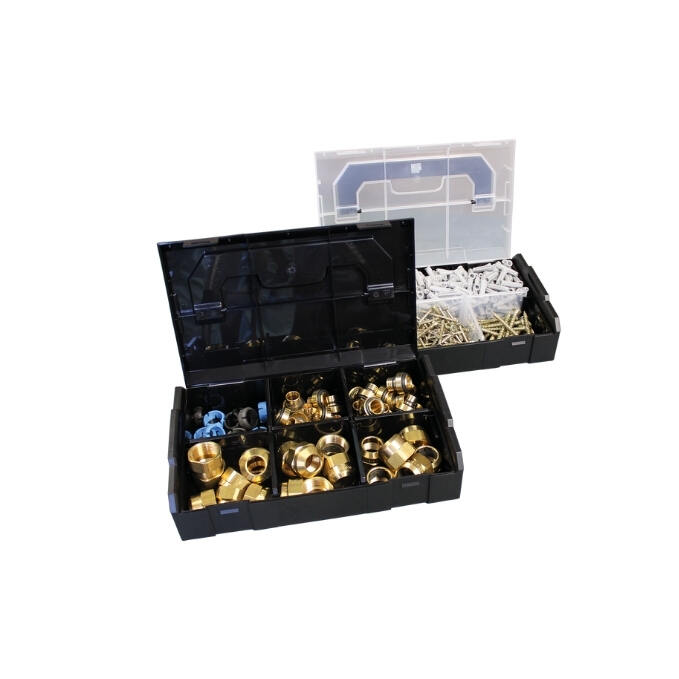 The click mechanism lets you stack and move multiple boxes with ease – just like the L-BOXX Micro or Softbag S. And thanks to its organizer-bin-compatible format, the L-BOXX Mini fits perfectly as an insert in the L-BOXX 1.