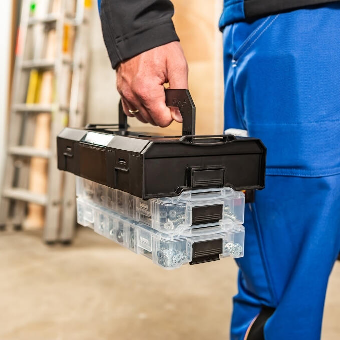 The mini toolbox may be small in size, but it's big on organization. Designed to hold assortments of up to 3.3 lbs, it keeps even the smallest items neatly sorted – perfect for accessories, spare parts, or anything that tends to go missing.