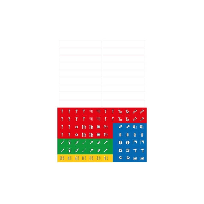 Weather-Resistant marking labels on DIN A4 sheets. Ideal for labeling with a laser printer. Perfect for long-lasting identification of your tool cases— both indoors and outdoors.