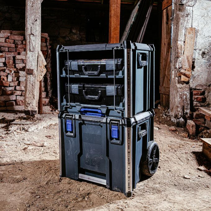 Stackable, connectable, and detachable in seconds thanks to the smart click mechanism. Fully compatible with L-BOXX Contractor, ProClick, and the globally trusted L-BOXX Baseline – for a system that works the way you do. The integrated aluminum rails offer not just extra stability but also docking points for ProClick tool pouches, holders, and more. M6 threaded inserts give you even more options for safely attaching additional accessories.