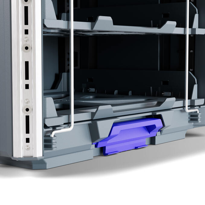 The 120% extension length gives you full access to your BOXXes – even when the unit is installed in a vehicle or used directly on-site. Whether it’s small parts in the drawer or tools and materials in the boxes – everything stays neat, accessible, and securely stored thanks to foldable metal latches, even while in transit.