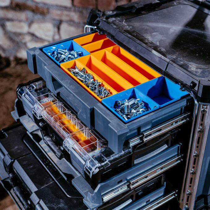 Chaos is so yesterday. The toolbox - Large Drawer Tool Box C1 combines one fixed drawer with two full-extension pull-outs for L-BOXXes, W-BOXXes or T-BOXXes – perfect if you need flexibility, but won’t compromise on organization.