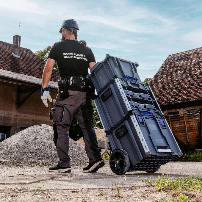 Stack it with a click. Expand it with the cubing concept – into a solid base for your mobile work surface – bringing structure and real value straight to the jobsite. And when security matters, the Safety Lock lets you lock up your tool module with optional padlocks.
