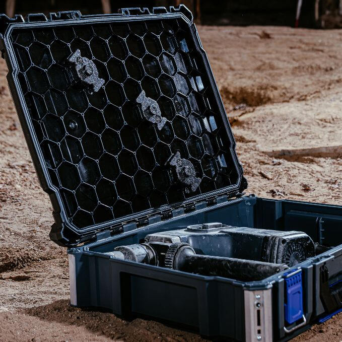When the case is closed, the lid pads apply light pressure to the contents – such as heavy machinery – keeping everything safely in position.