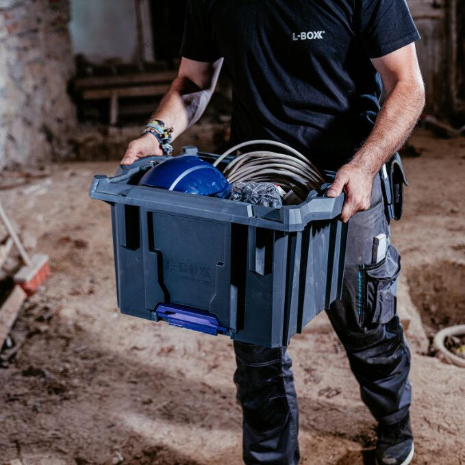 Stackable and connectable with all L-BOXX Contractor modules, and fully compatible with the globally trusted L-BOXX Baseline and ProClick tool pouches. The click mechanism allows for quick and intuitive separation – no force required. Made from durable, impact-resistant polypropylene, this spacious tool crate is part of a modular system that redefines order, efficiency, and flexibility.