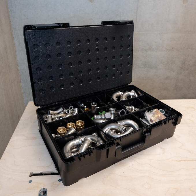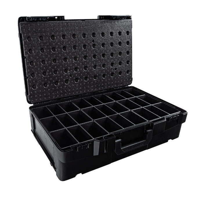 With this organizer bin set including a matching lid insert, your XL-BOXX instantly transforms into a versatile assortment case for consumables. The set includes nine identically sized organizer bins, each equipped with two removable dividers. The dividers can be positioned flexibly, allowing you to customize the layout to suit your specific contents.