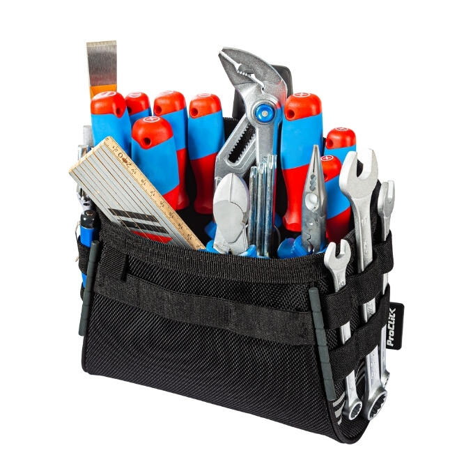 15 elastic loops bring structure to your tool chaos – from screwdrivers to combination pliers, everything has its place and is instantly at hand. No unnecessary rummaging, no wasted time. And because every day brings new surprises, there's an extra webbing loop for a carabiner to attach additional gear.